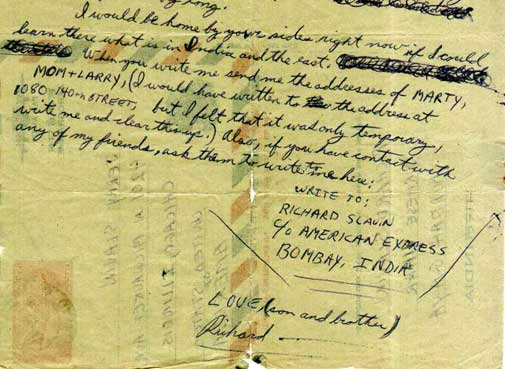 I would be home by your sides right now if I could learn there what is in India and east. When you write me send me the addresses of MARTY, MOM+LARRY, (I would have written to the address at 1080 140th STREET, but I felt that it was only temporary, write me and clear this up.) Also you have contact with any of my friends, ask them to write to me here: